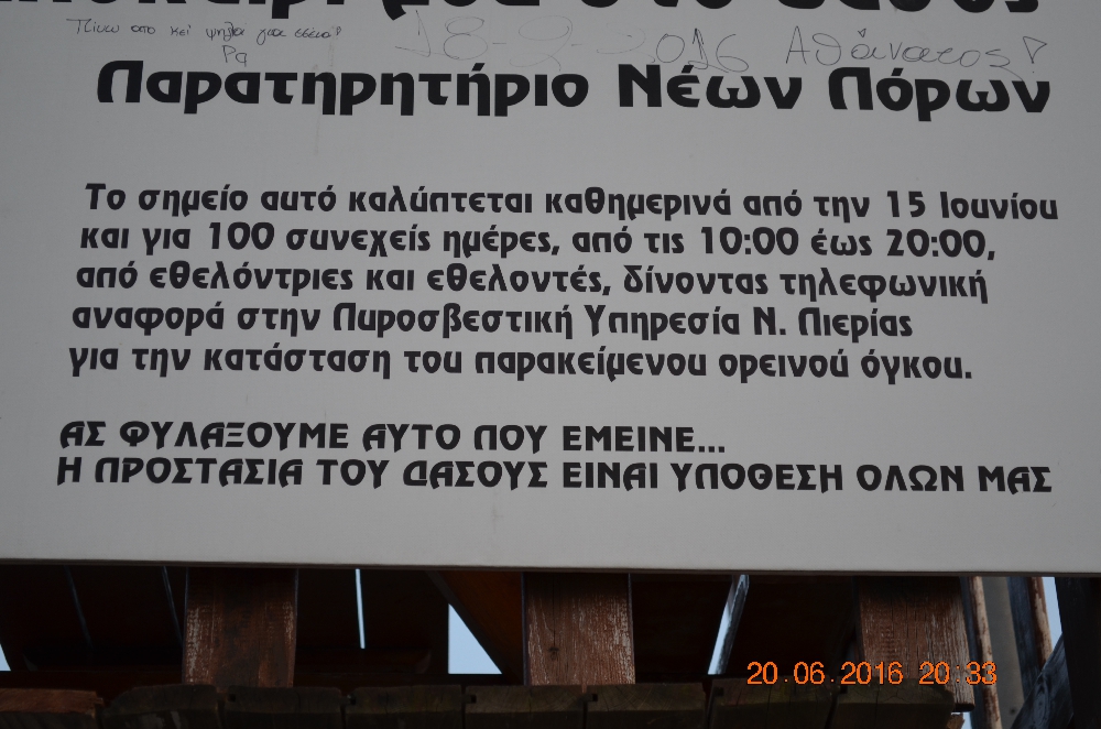 ΤΩΡΑ που ένα από τα τρία παρατηρητήρια –αυτό των Νέων Πόρων- κλείνει, μετά οκτώ (8) καλοκαίρια, γιατί δεν υπάρχουν αρκετοί εθελοντές να το επανδρώσουν και ΚΑΝΕΙΣ δεν μας θέτει προ των ευθυνών μας, ενώ κάθε καλοκαίρι τριάντα (30) συναγερμοί αποτρέπουν στην έναρξή της, μια εξέλιξη που δεν μπορούμε να αντιμετωπίσουμε (πυρκαγιά σε βουνό παρατημένο δεκαετίες)