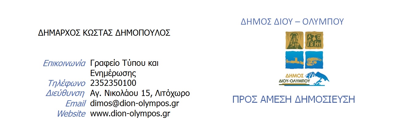 δελτίο Τύπου του Δήμου Δίου-Ολύμπου
