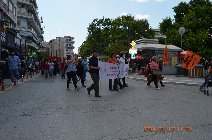 Τέλος ακολούθησε πορεία στους κεντρικούς δρόμους της Κατερίνης, όπου συνθήματα όπως «8ωρο, 5μερο, σταθερή δουλειά-αυτή είναι απαίτηση της εργατιάς» και «Στείλτε για ελιές τον Χατζηδάκη-το 8ωρο ανήκει στον εργάτη» έδιναν μαχητικό παλμό στη διαδήλωση.
