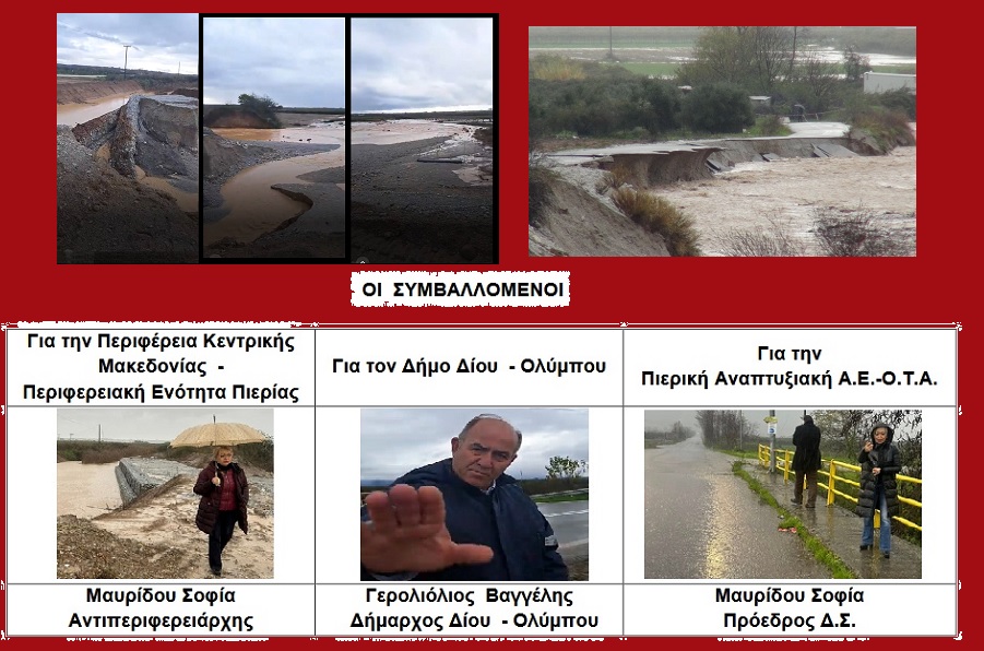 ΟΛΟ ΑΥΤΟ ΤΟ ΔΙΑΣΤΗΜΑ, με απόφαση και ευθύνη της Περιφέρειας/Αντιπεριφέρειας, υλοποιούνται… αντιπλημμυρικές παρεμβάσεις και … σωστικές εργασίες και καθαρισμοί ρεμάτων από φερτά υλικά/χαλίκια που, όπως πρόσφατα αποδείχτηκε με τον “Byron”, είναι -κατά πολύ- “πεταμένα λεφτά”, όσο κι αν διαφημίζονται ως σωτήρια από την Σοφία Μαυρίδου. Τελευταία, τρανή απόδειξη των παραπάνω είναι και το γεγονός ότι ο “Byron” κατέστρεψε πολλές απ’ αυτές τις αντιπλημμυρικές παρεμβάσεις και το αποτέλεσμα ήταν και πάλι το ίδιο: η ΔΕ Δίου αποκομμένη από τον υπόλοιπο κόσμο, δρόμοι πλημμυρισμένοι, χωράφια-βενετίες, πλημμυρισμένα σπίτια και κτίρια, η Κατερίνη να κινδυνεύει να κινδυνεύει να χάσει την υδροδότησή της και ο δήμαρχός της να απευθύνει δημόσια έκκληση για βοήθεια. Τέσσερεις μέρες μετά τον κακό χαμό που ξαναζήσαμε με τον “Byron” τώρα, με την «Bora” πέρυσι, κοκ κι ενώ ΠΡΙΝ την κακοκαιρία η Σοφία Μαυρίδου “πλημμύρισε” τον τοπικό Τύπο με διαβεβαιώσεις για την ετοιμότητα προσωπικού και εξοπλισμού, επανεμφανίστηκε και -με ένα απίστευτο δελτίο Τύπου- αξιολόγησε τις επιδόσεις της, τις επιδόσεις έργων και υπηρεσιών ως σχεδόν