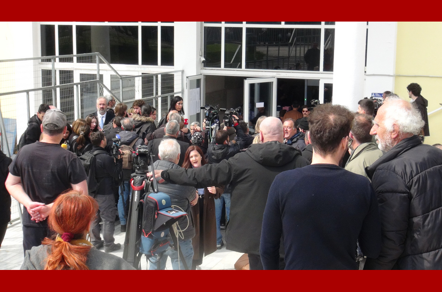Στο χώρο έξω από το δικαστήριο που φρουρούσαν άνδρες των ΜΑΤ και λεωφορεία τους που είχαν δημιουργήσει τείχος προστασίας, δεκάδες φοιτητές και μέλη συλλογικοτήτων, σωματείων, εργατικών κέντρων και μελών του Τ57 απ’ όλη την Ελλάδα, συνέχισαν καθ’ όλη την διάρκεια της πρώτης μέρας να απαιτούν αυτό που η χώρα απαιτεί εδώ και τρία χρόνια και 23 μέρες: Δικαιοσύνη. –